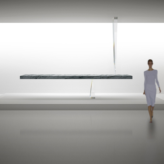 4. Agravic Stone Table by Tokujin Yoshioka : Design illusionist Tokujin Yoshioka will masterfully balance a monolithic slab of marble between two transparent triangles, freeing the table from gravity to exist as if it were floating in the air. The adjective “awesome” truly does apply here.|