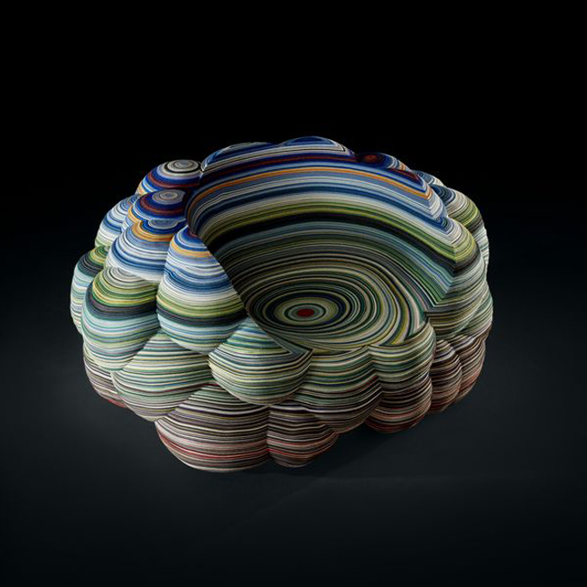 5. Layered Fabric Chair by Richard Hutten for Kvadrat : Made from 840m of Kvadrat fabric stacked in 545 layers, the chair is inspired by the rock pigments of the Painted Desert in Arizona. Almost 100 colours are used and layers are cut out and assembled individually. That’s almost a kilometre of chair!|
