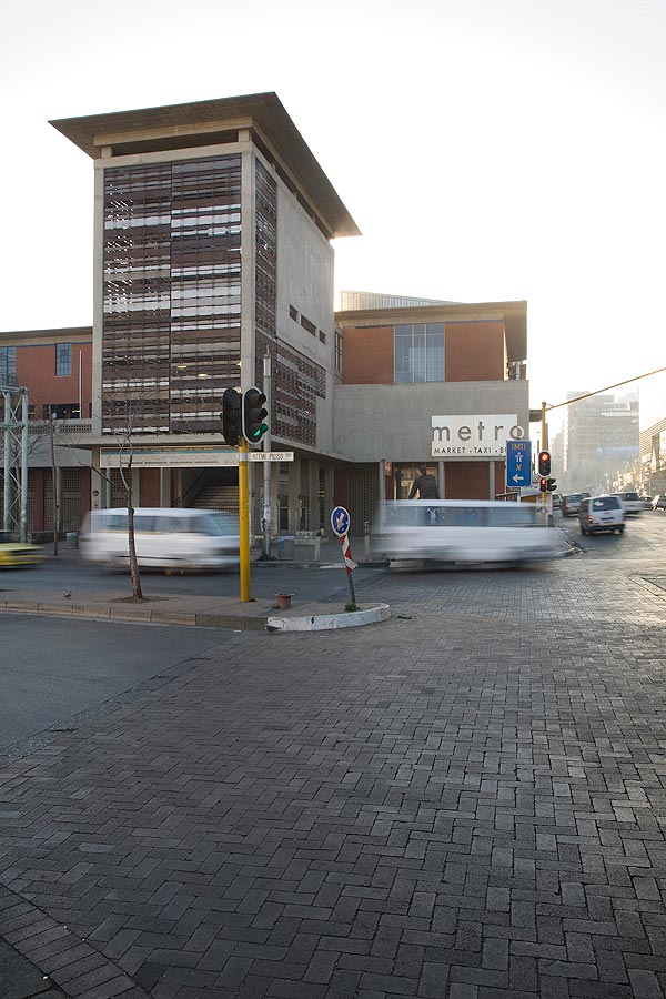 The Metro Mall by Urban Solutions encompasses a whole city block, and responds to the inner-city context through its scale and the way in which it creates a continuous street edge. It has also contributed to the regeneration of a part of Johannesburg and serves as both a transport and trader terminal.