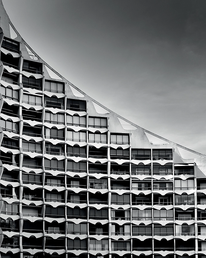 A greyscale glimpse of the iconic French seaside town La Grande-Motte, where concrete meets raw modernism, inspires gift s for ultra-cool devotees of perfect proportion and functional simplicity.