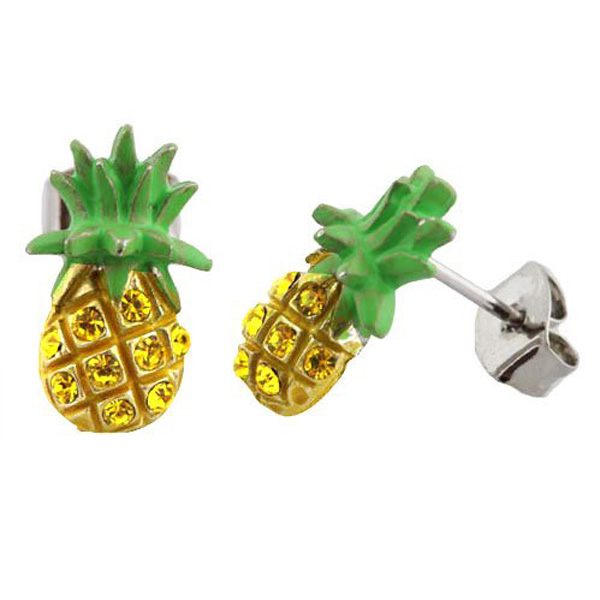3. Green with Yellow Iced Out Pineapple Studs R1 013, wantitall.co.za
