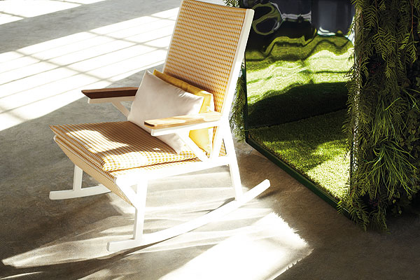 “My intention was to maintain the lateral aluminium double moulding but with a seat and back similar to taut netting, a soft and pleasant grid, in three dimensions, which we’ve achieved after two years of research,” says Patricia.