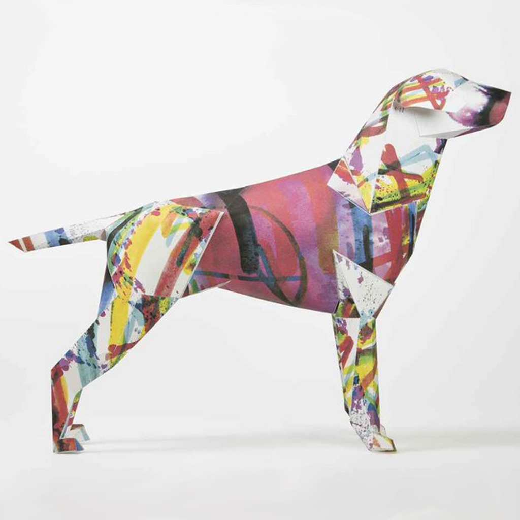 Liam and Richard then distributed hundreds of Geralds to some of their favourite designers across the world, inviting them to give their own spin on their new paper best friend. The result was a range of Geralds donning varied and very colourful new coats, which was launched at 100% Design in London. The exhibition was a total sell-out, every dog found a new home on the first day.