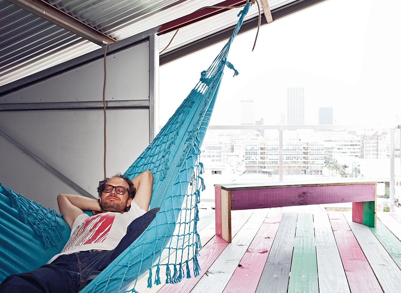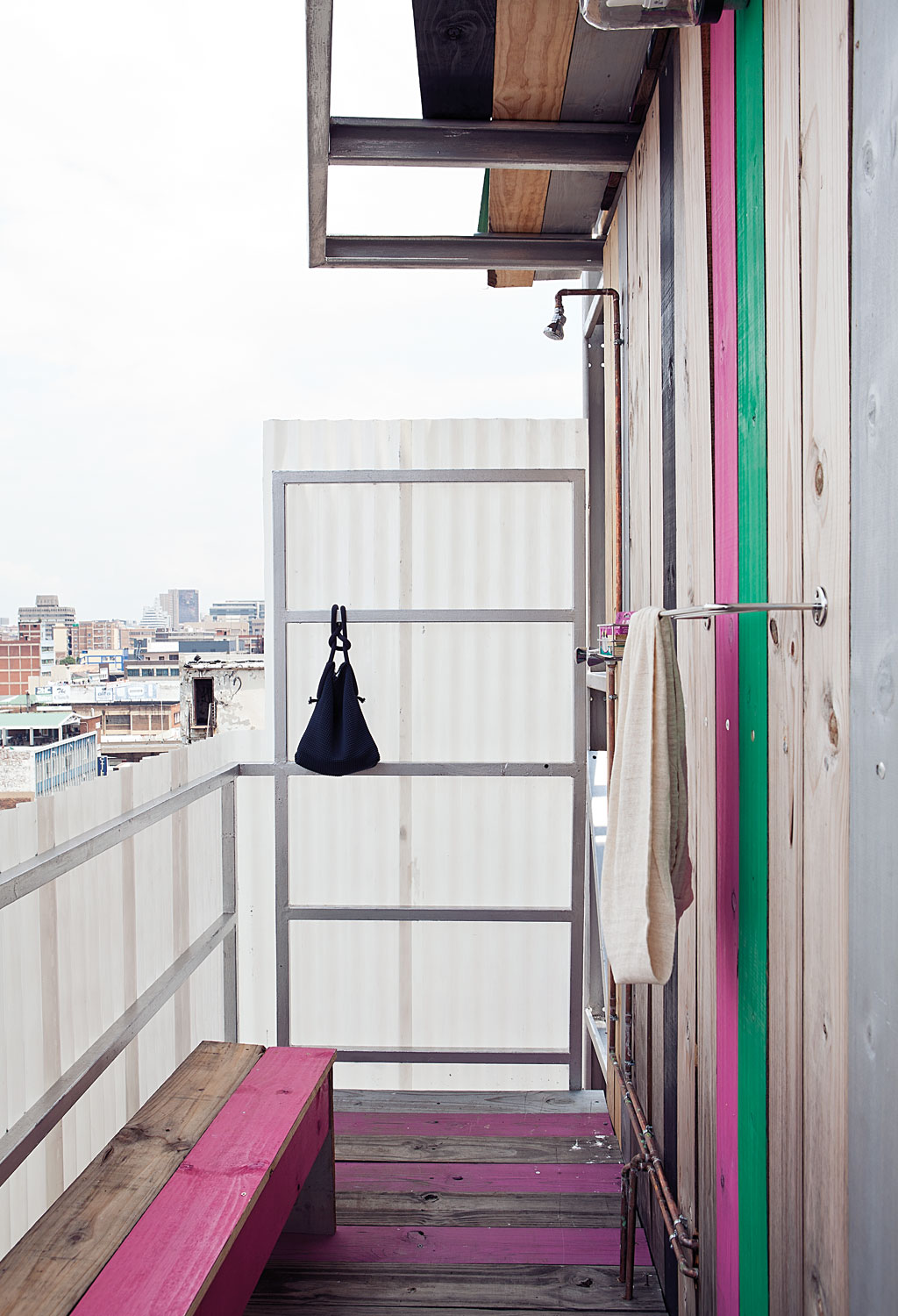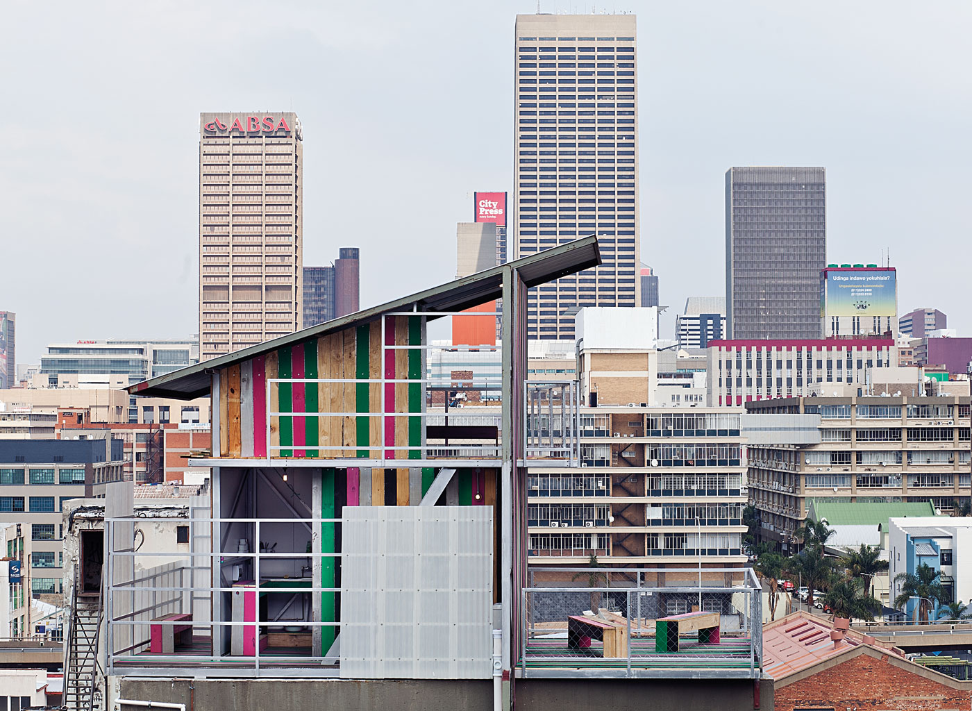 Kerim came across the rooftop in 2010 while working on Nomadic Structures, a project in which he built temporary structures around the country with the help of friend Gregor Metzger. One of the locations was a rooftop in the Maboneng Precinct. “I met the developer, Jonathan Liebman, and loved his rooftops. I asked if I could buy one, but Jonathan said that rather than selling me one, he would trade it for art. This was a unique notion, and I proposed we build the artwork on a rooftop,” says Kerim.