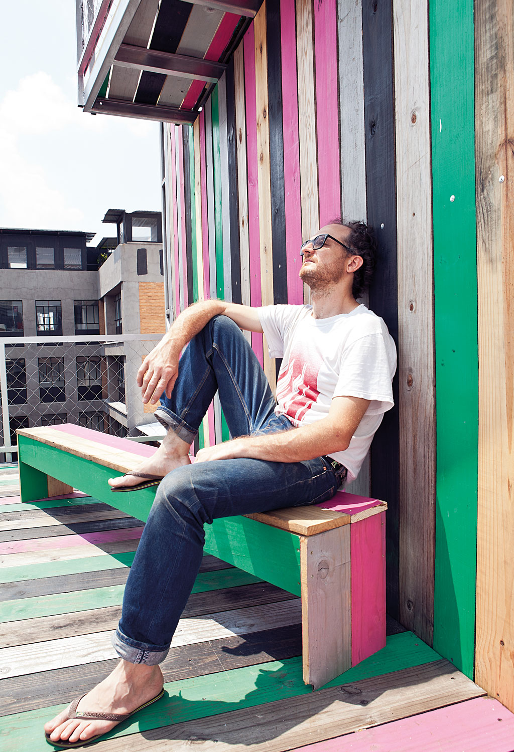 Kerim’s works have one thing in common: colour. “I used to stick to a very rigid colour system that used only primary and secondary colours. I was very theoretical about my use of colour,” he says. But after completing a project at the Museum Tinguely in Basel, Switzerland, he has branched out into more varied colour compositions. “This is the second colour composition I came up with. I think the green, silver and magenta are very European,” he says, “but I don’t want to impose this idea on the viewers, although I have a feeling that they would probably agree. It’s a subsequent dialogue.”