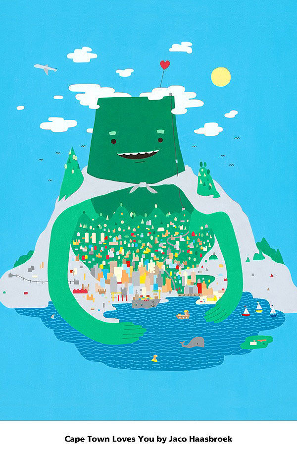 Citymob approached Between 10and5, a showcase platform for the South African design industry, to curate a collection of original artwork by Cape Town’s top illustrators. Each illustrator created an A2 poster inspired by their Cape Town icons in their own unique style. The posters are being sold on the CityMob site for R120 each including delivery. The deal went live yesterday morning and runs till the end of the week.