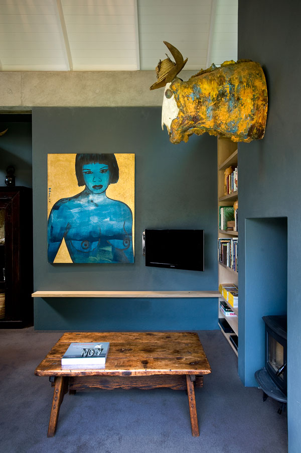 The house is a collection of buildings around the central glass and stone living area. The Reads’ grown-up daughters have a suite of their own, a visitors’ cottage lies a discreet distance from the main house, and Christine and Mark can retreat to their room on the hill to enjoy the views and serenity offered by the environment. Inside each room, a mezzanine level provides not only optional sleeping room for children but also a cunning storage space concept.