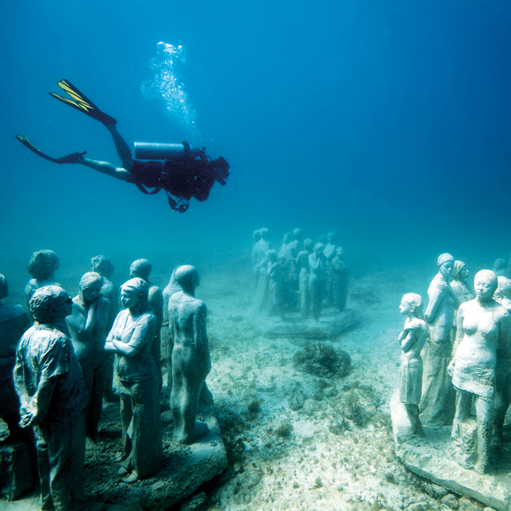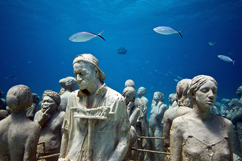 1. Museo Subacuatico de Arte in Mexico : Off the coast of Cancun lies one of the largest and most ambitious underwater artificial art attractions in the world. Consisting of more than 500 permanent life-size sculptures by English sculptor Jason deCaires Taylor, it aims to promote coral life.| -