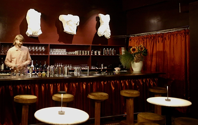 “From there, a narrow corridor draws you forward, creating a sense of anticipation as the room gradually opens into the bar.