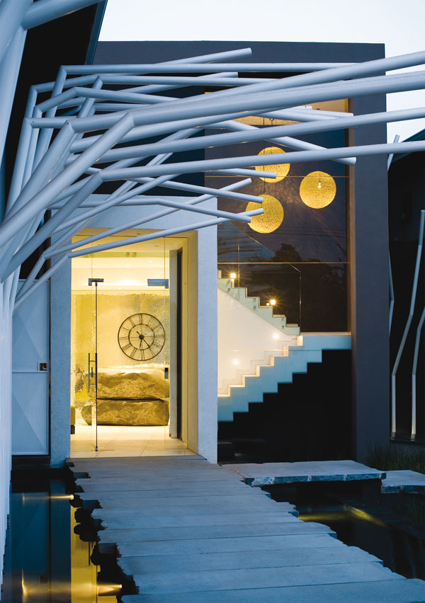 A cluster of Eduardo Villastyle white steel “trees” welcome you and line the watery path to the entrance of this thoroughly modern establishment, where you’ll literally disappear into the coolest spot in Pretoria.