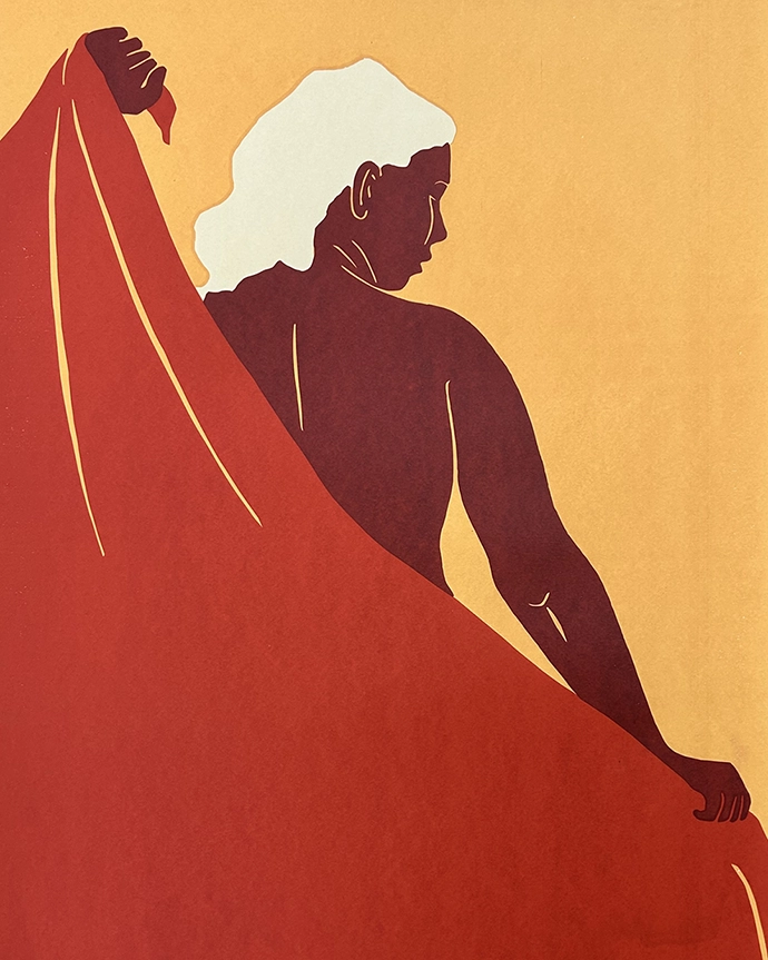 “For my artwork I have created an image of a woman wrapping herself in a blanket. The blanket is a literal representation of the hundreds of blankets I saw, whether in the markets, or wrapped around people in the streets, as well as being symbolic of the beauty, warmth and welcome I felt on my trip. For me this piece encapsulates the essence of my Nairobi experience – which felt like a fusion of warmth, hospitality, and cultural richness.”