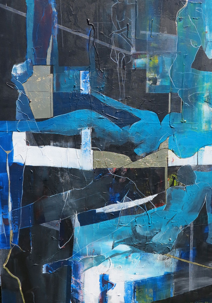 Primarily acrylics. I work quite quickly, so it suits my style. I also love charcoal and ink, which I use a lot, and I love experimenting with gold and copper leaf.