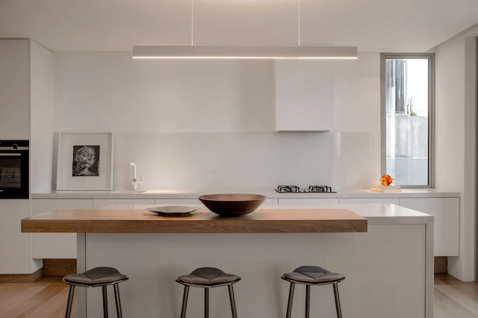 Also designed by Jankel, the interior architecture speaks to a barefoot modernist sensibility, letting the space and materiality of the fittings and fixtures do the aesthetic heavy lifting. “I like to keep interior architecture almost anonymous, because I want it to be timeless,” says Jankel. “As soon as you bring fads in, it becomes temporary, locking you into a renovation cycle.”
