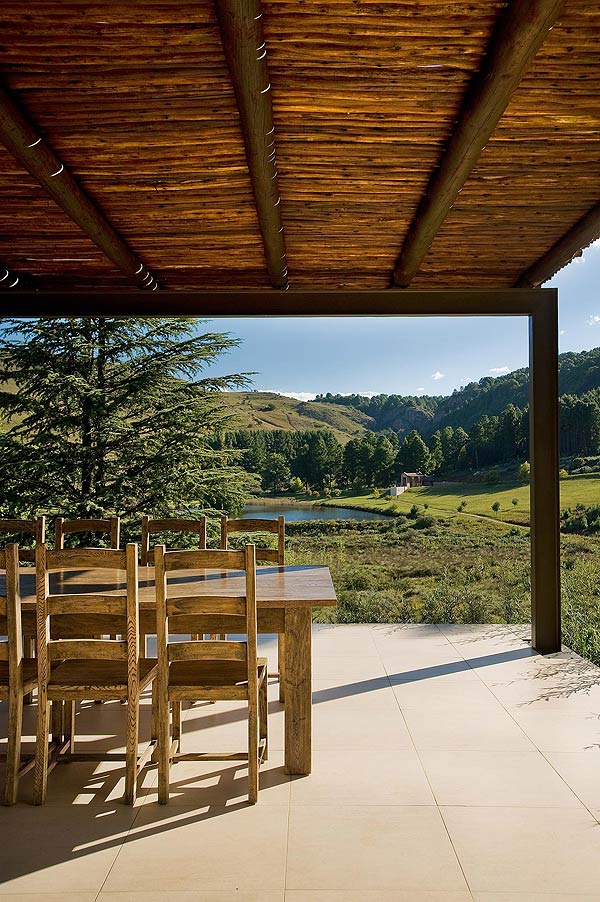 James het dit goed reggekry om tradisionele Dullstroom-klipwerk te kombineer met Noord-Europese materiale soos gebrande kleiteëls en kontemporêre hout- en glaseffekte. “ ’n Mens moet darem ’n sweem van die plaaslike volksboukunde behou – dit is deel van my ontwerpfilosofie,” sê hy.