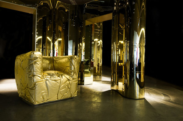 These include Peter Traag’s Sponge armchair, with its pressed wrinkles that create a unique pattern for each piece, and the Leather Works seat by the Campana brothers, which has been re-upholstered in a special new leather.