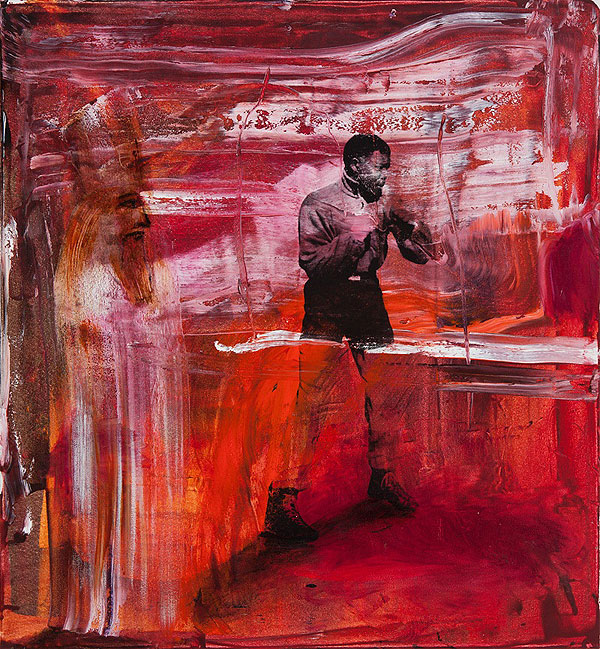 Using photographs taken by Bob Gosani before Mandela’s imprisonment as well as photos by Benny Gool from after his release, Beezy has, for the last two years, been working on a series of paintings using photographs in silkscreen format. These photographs have been printed onto canvas – a medium Beezy usually uses for landscapes or abstract works.