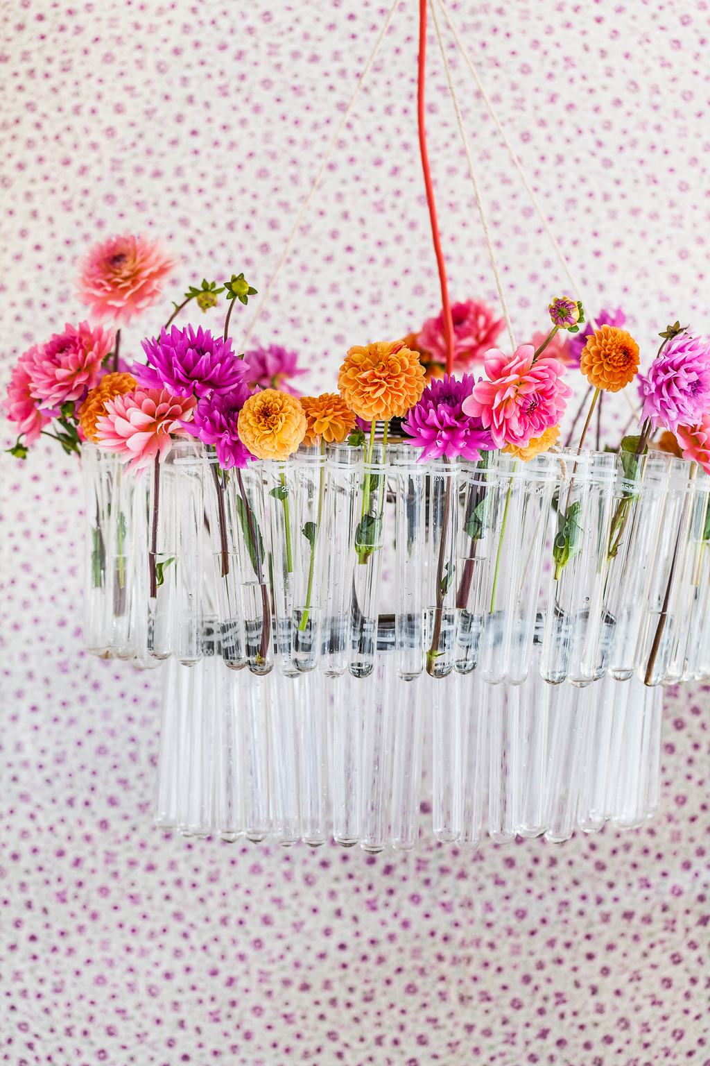 5. Fill the tubes with water and flowers to create a breathtaking hanging vase.
