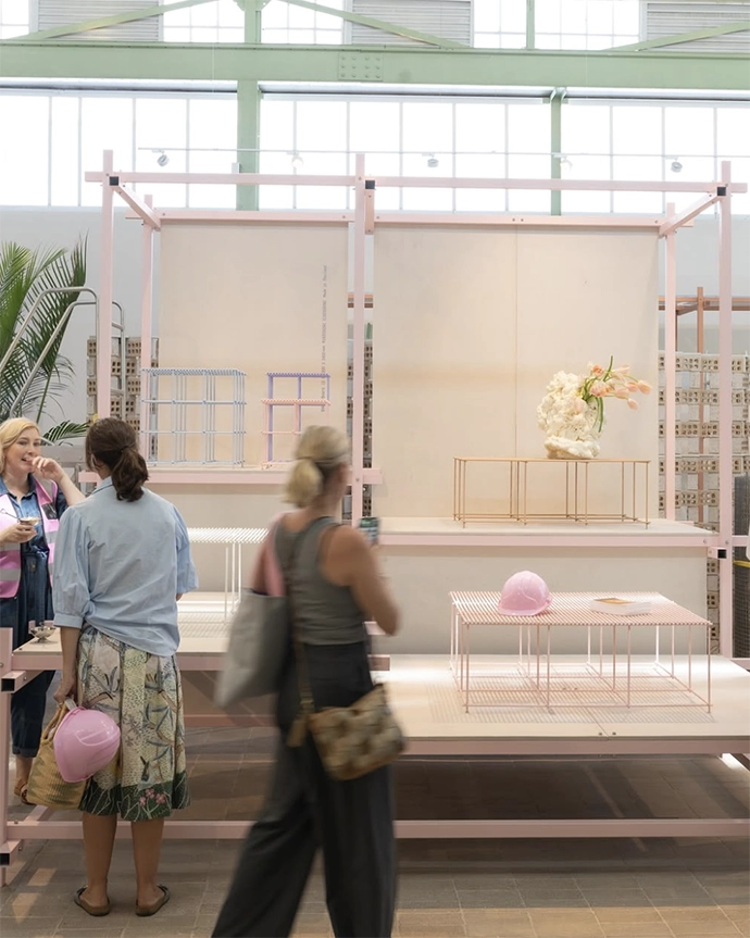 HALDANE unveiled its new outdoor collections inspired by construction, with an interactive showroom launch aptly titled Site Meeting – there were hard hats, high-vis vests, and a brick-and-mortar-inspired cake to celebrate. Highlighted pieces included the Scaffold New Brute occasional tables and the Super Rational modular sofa system.