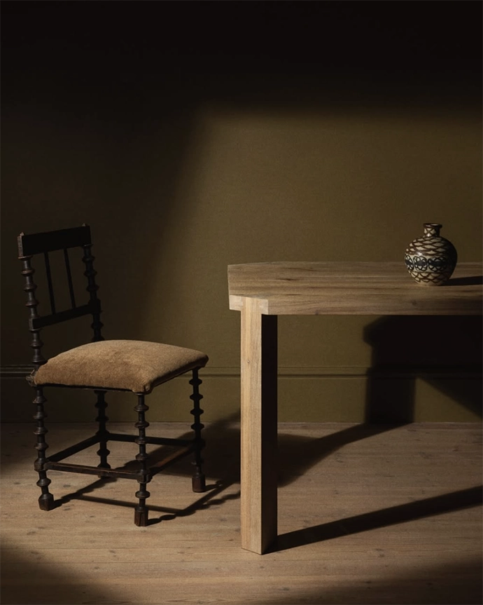 Led by longevity and material respect, the Mungo x James Mudge Furniture Studio collaboration saw the Harrington and Nordwood chairs upholstered in Mungo’s new Miro Cloth. The bespoke natural-fibre textile brings softness and depth to the chairs’ considered forms.