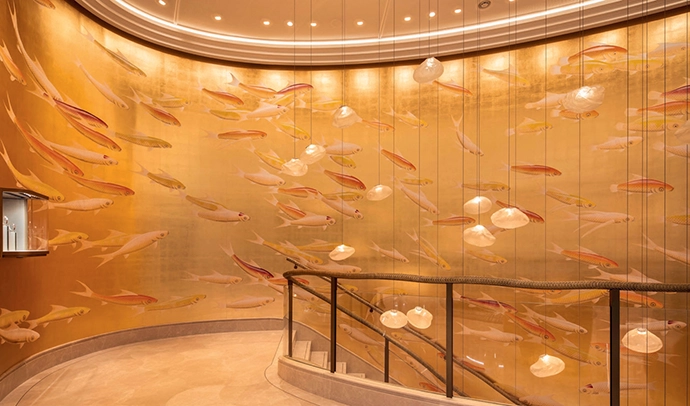 At Cartier Haikou, a koi-lined staircase celebrates the tropical landscapes and serene outdoor spirit of Hainan Island.