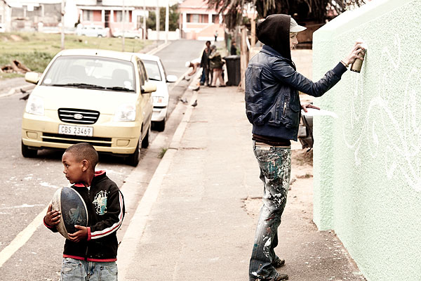 Felare Nsanile Nkama, who runs the home, agrees with Grant: “At first I had the mindset that graffiti was gang related, but it’s actually inspiring. The artists make the boys feel part of it and involve and relate them to the art. When David asked them if they would like their names in his piece, they were very positive, saying that one day they would be able to bring their children to the home to show them their names and where they lived.”