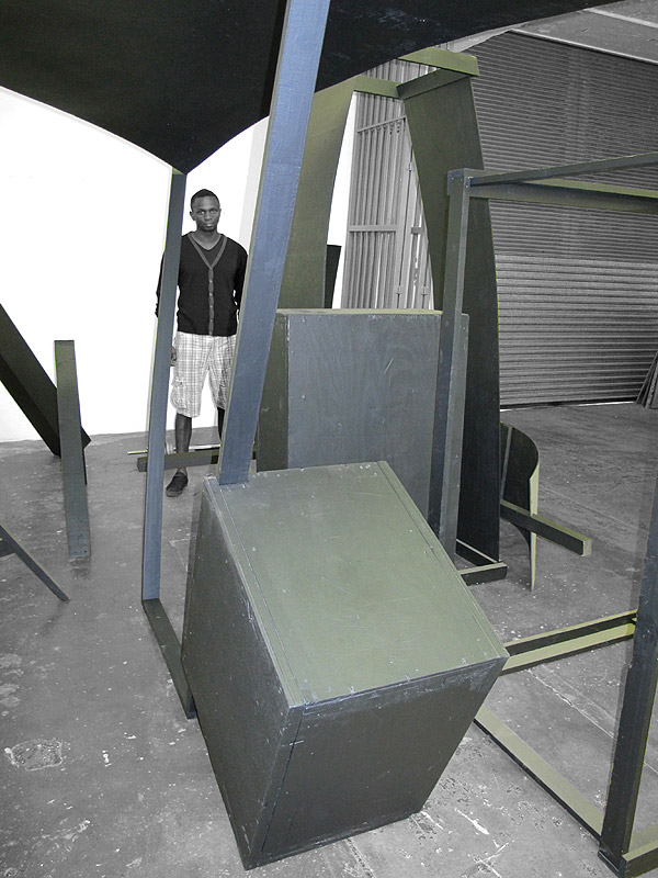 The cover of VISI 57, on shelf during October and November 2011, carries a mysterious image of blackened wood, broken crates and designer Ercol chairs from Tonic. VISI spoke to Serge Alain Nitegeka, the artist behind the installation.