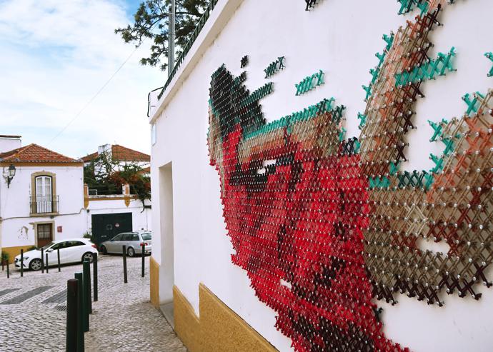 Portuguese artist and designer Ana Martins (aka Aheneah) creates cross-stitch street artworks using a combination of digital and analogue techniques and embroidery.