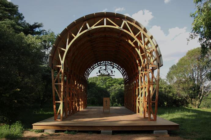 The chapel, designed by Gideon and developed and executed by the team, is made from saligna timber that was grown, cut and cured on the Krynauw family farm near Piet Retief, where David’s father had the foresight to plant Eucalyptus saligna trees. This method of building can be applied to anything, from a chair to a house, says David.