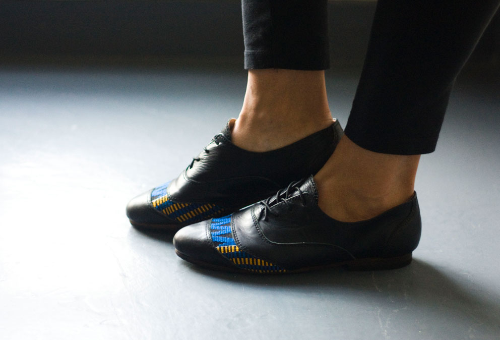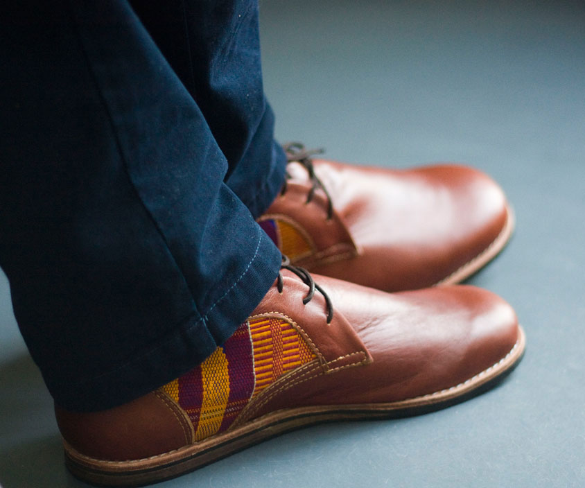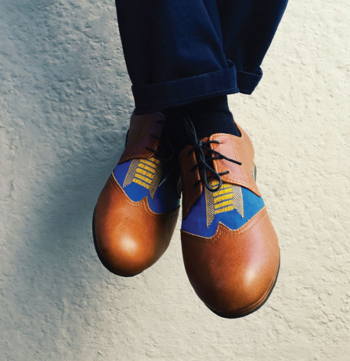 The signature aesthetic (leather and canvas with handwoven textiles) is applied across our range of products, including our shoes. We reference classic shoe styles such as brogues, veldskoene, pumps and add our own design sensibility to the finished item. We’ve teamed up with skilled, independent leather craftsmen based in the city to produce the shoes.