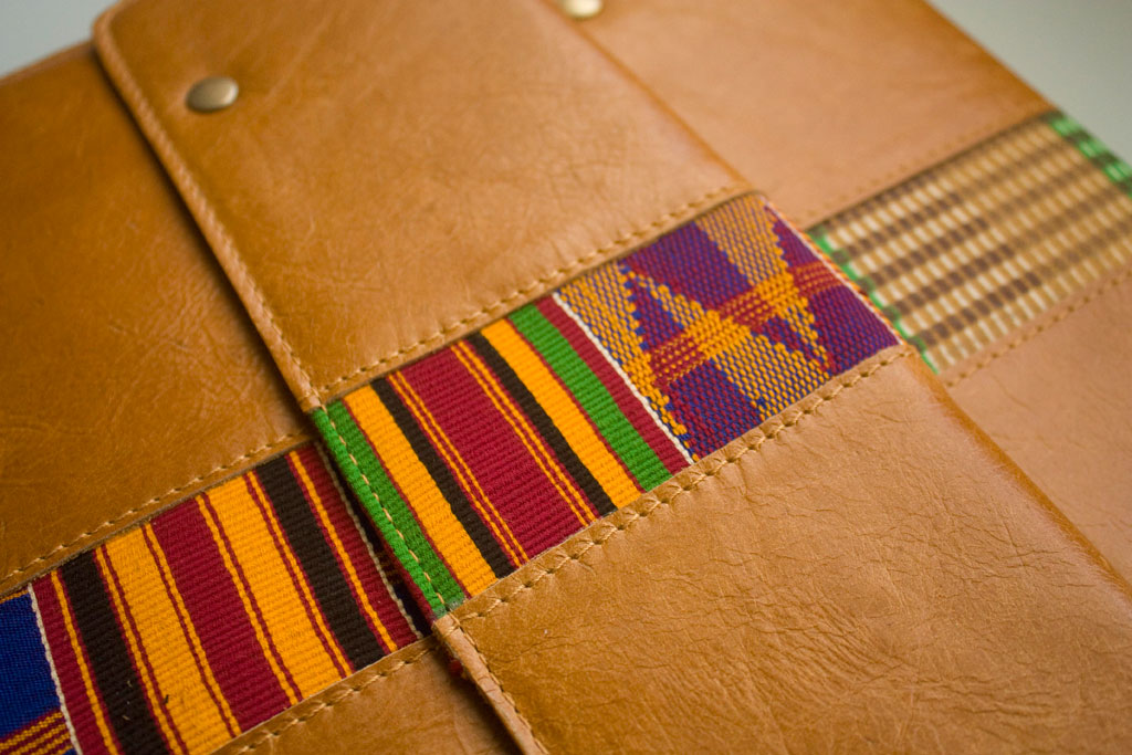 We now produce satchels, backpacks, laptop sleeves, clutch purses and shoes from locally sourced leather and canvas (as our foundation), adding the woven fabric for accent.