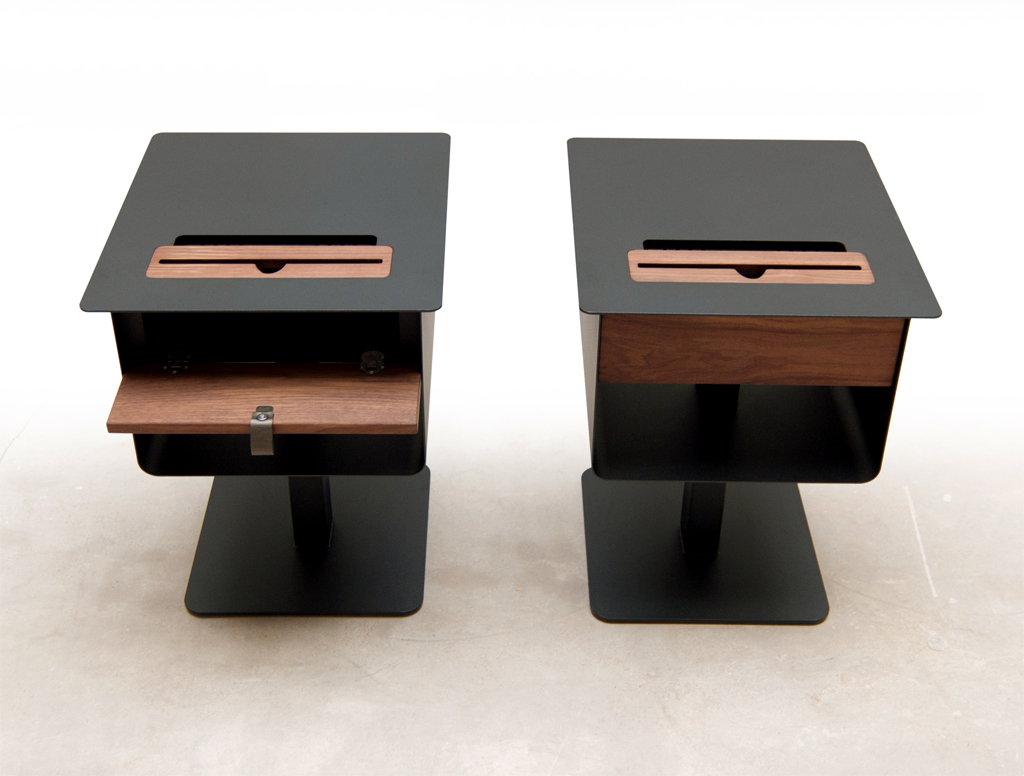 This steel-and-wood nightstand simplifies life by organising and hiding unsightly cables, with the added bonus of being a charging dock and having only one main AC supply.