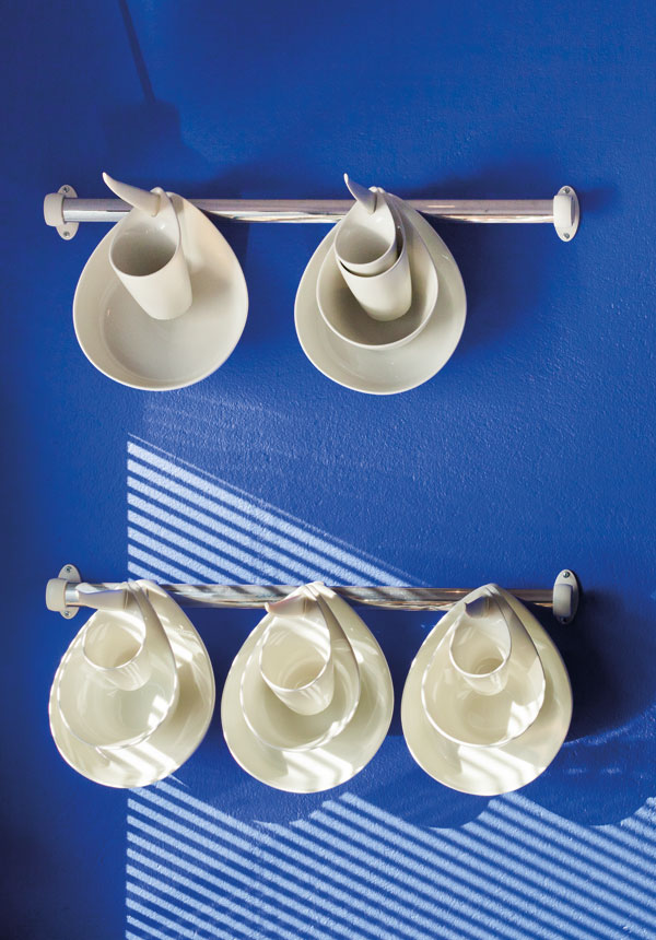 Ná ’n jaar of wat van wik en weeg het Johan besluit om Des se Azul Colonial te probeer in die vergaderkamer by die praktyk wat hy met sy vennoot, wyle Louis Louw, gedeel het. “Dit het ongelooflik goeie reaksie ontlok,” onthou hy, en só is die saadjie geplant om ook in die kubistiese Kaapse vakansiehuis wat hulle self ontwerp en in 2002 laat bou het, met die kleur te eksperimenteer.