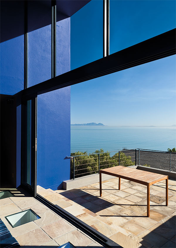 “En die Kaapse omgewing is net so ongeloofl ik ryk… Die berge en die see staan sentraal, ja, maar dit gaan ook oor ’n rykheid op kulturele vlak. As ons in die Kaap is, ry ons gedurig rond en verken die wêreld, en wanneer ons die slag net hier by die huis bly, gaan sit ons elkeen op ons eie stoel en bekyk alles om ons wat gedurig verander,” sê Gardiol. “En as ons genoeg gesien het, ruil ons plekke om en kyk van voor af,” sê Johan, “want uiteindelik is dít die héél lekkerste van ons huis: Jy sien die wêreld déúr die huis, en danksy die nuwe blou lyk hierdie wêreld altyd nuut.”