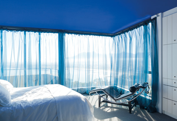 Die blou hef grense op en verwar jou oor waar binne eindig en buite begin; dit maak die huis nuut en meer dramaties, en demp terselfdertyd die lig wat van buite af instroom. En tog, soos die louwarm winterson oor die huis beweeg, kom jy agter selfs die dele wat in gitdonker skadu gehul is, voel nooit ooit kil of neerdrukkend nie.