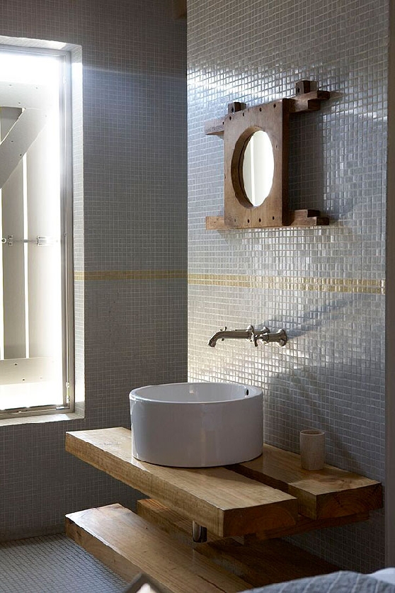 Die oopplankombuis met sy lang houttafel en ingeboude houtpizzaoond – hulle kinders se enigste ontwerpvereiste – is ’n gemeenskaplike ontmoetingsplek. Hier bring die gesin baie aande deur en maak saam pizzas: “Almal is betrokke – of jy nou help om deeg te maak of die bestanddele opkap,” sê Johann.