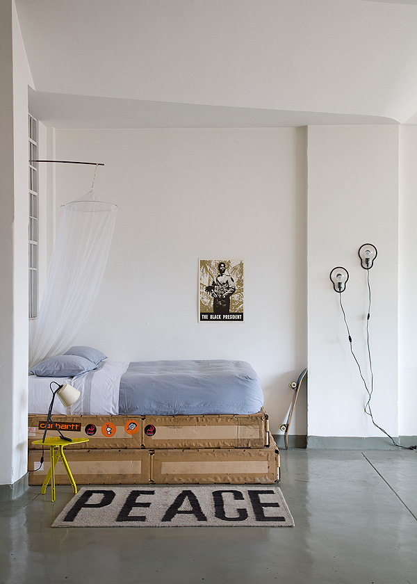 “Ek en my vennoot het aandele in die gebou gekoop en die ander eienaars oorreed om die boonste twee verdiepings in nege loftwoonstelle te omskep,” sê Bié. “Ons het maar ’n knap begroting gehad – 26’10 South-argitekte het die onderverdeling behartig en ek was die projekbestuurder. Jy sal nie glo hoeveel ek in die vorm van sweet ingesit het nie, maar dit was alles vir die liefde van die saak.”