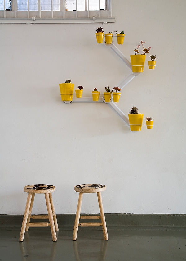 Dié vriende ruil soms kuns vir meubels en het ook saamgewerk aan ’n reeks T-hemde, wat by Dokter and Misses se winkel in Milpark, Stanleylaan 44, te kry is.