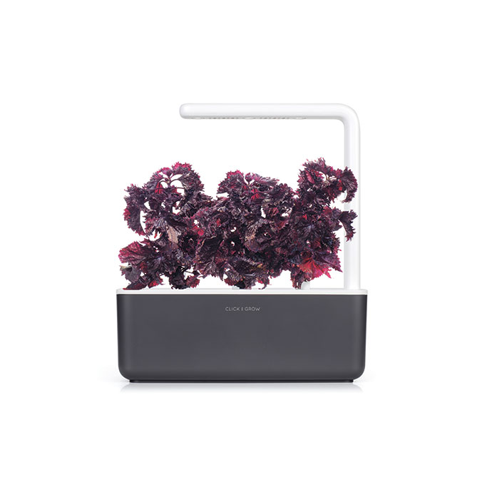 Based on the concept of a capsule coffee machine, Click & Grow uses pre-seeded biodegradable plant capsules combined with modern technology to create indoor herb gardens.