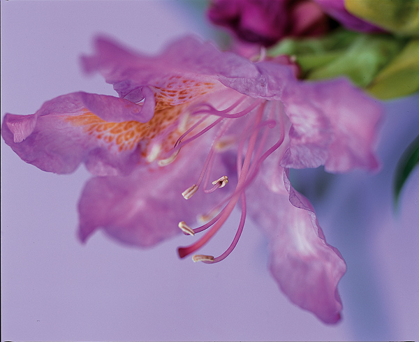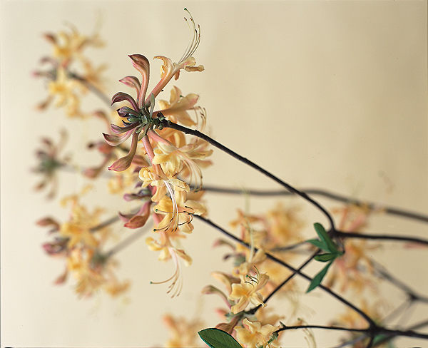 Azaleas are universal garden plants that are as well-known as roses: Rhododendron – rhodos (rose) and dendron (tree). But the flowers challenge the eye because their colour, unlike that of the rose, is merely an impression. To describe them is another challenge, even to our newly acquired palette. Study them intensely – and perhaps you can become a colour.