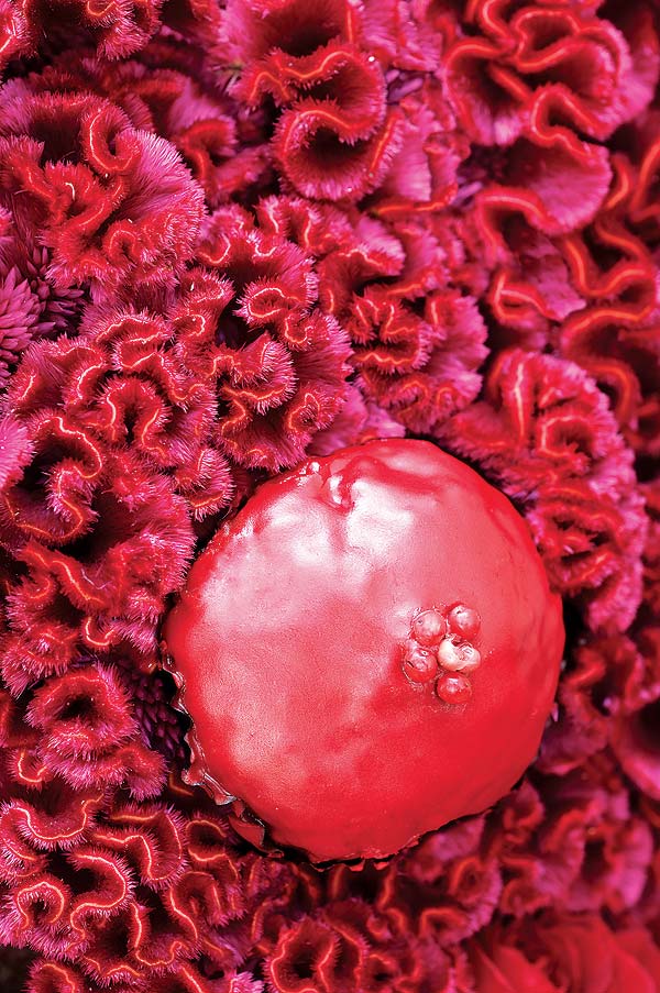 Blood-red Vodka chocolate cupcakes with pink peppercorns