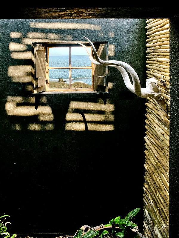 Die idee om na binne te keer het ook vir die buiteruimtes gegeld. Omdat hy nie meer ’n uitsig gehad het nie, wou David die meeste daarvan maak. “Die vier groot manatokabome wat ek by ’n vriend present gekry het, maak die tuin. Hulle kan die sout seelug verduur en het dadelik die tuin in ’n geil lushof verander,” sê hy.