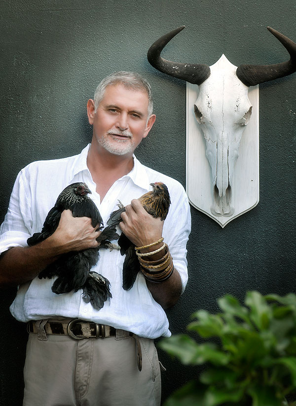 Dit was asof hy die trendsvoorspeller Li Edelkoort se gedagtes gelees het, want kort voor haar onlangse voorspelling dat voëls ons groot inspirasiebron sal word, het David ’n klomp van sy eie aangeskaf. Die binnehof het nou ’n hok met hoenders en eksotiese duiwe. “Om diere rondom jou te hê is ’n bevestiging van die lewe,” sê David, wat ook twee katte en drie honde het. “Die eenvoudige taak om vir hulle kos te gee en daagliks na hulle om te sien anker my geweldig.”