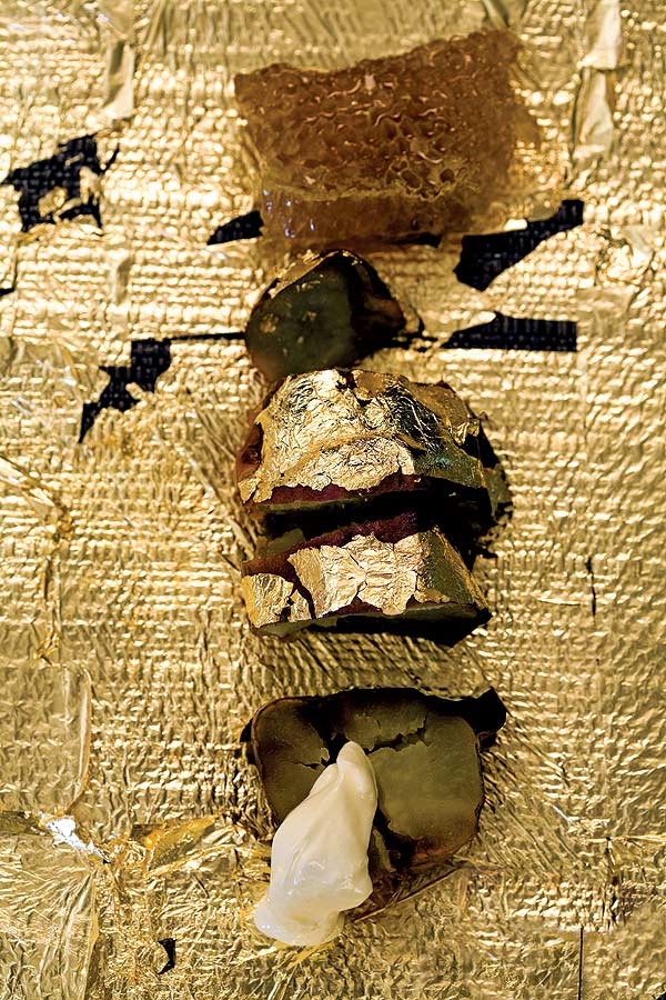 Roasted sweet potato with buttermilk, gold leaf and honeycomb