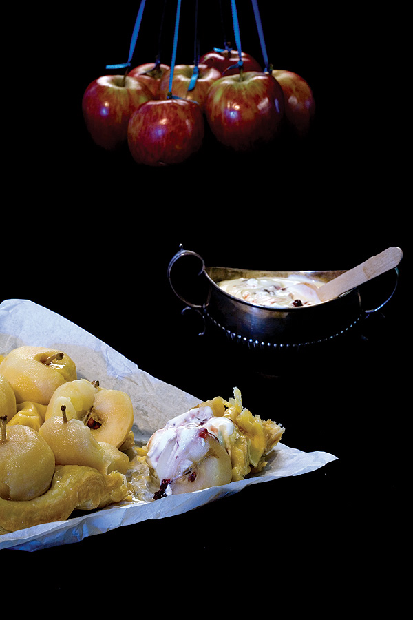 Arrange 10 to 12 small peeled ‘Red Gala’ apples upside down in a deep, well-buttered ovenproof dish. Sprinkle with 250g white sugar, mixed with 1 scraped vanilla pod and a pinch of sea salt. Roll out 400g of puff pastry and place the apples on top, pressing them down lightly. Bake the tart in a preheated oven (200°C) for 25-30 minutes or until the pastry is golden-brown and crisp. Turn upside down and serve warm with lashings of crème fraîche marbled with berry preserve.