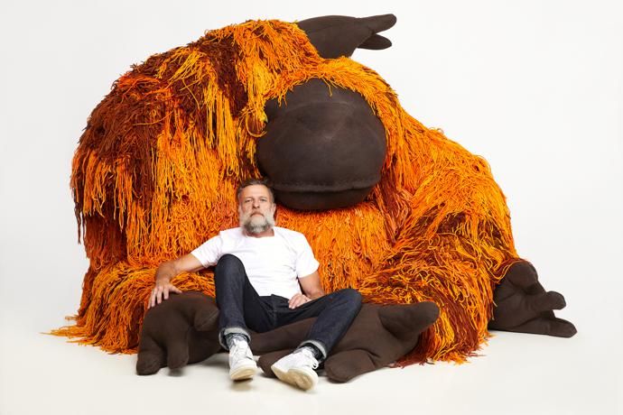 Produced using environmentally sustainable materials, the pods, whose surfaces have been crocheted, felted, stitched and embroidered with unique embellishments, have been extensively hand-worked by artisans in Cape Town. Porky worked closely with textile artist Ronel Jordaan and local craft collectives Heartworks and Mielie to translate his creatures into giant, tactile sculptures.