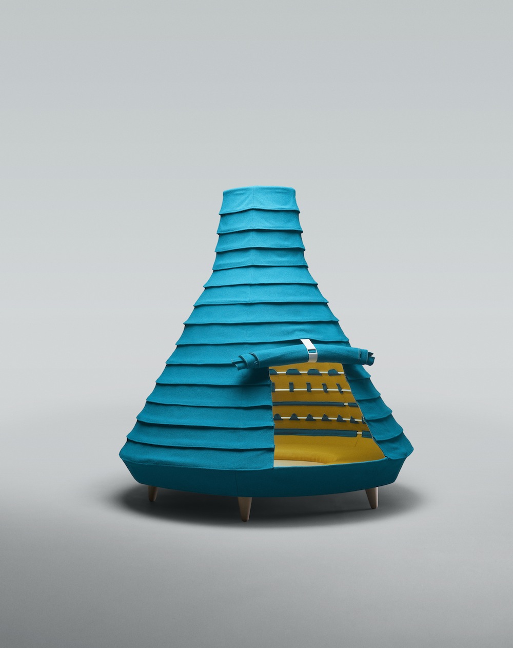 Kvadrat invited seven international curators to select design talents from seven key regions, amounting to 32 in total. The open brief presented each curator with the task of selecting designers that would reinterpret the classic textile, developed more than 45 years ago, in a modern context. The results were amazing, proving that a little imagination goes a long way towards re-invigorating an old brand, and making something as ordinary as woolen fabric come to life as something modern and exciting. Indeed, the creative vision of the curators elevated this particular product presentation to an art exhibition.