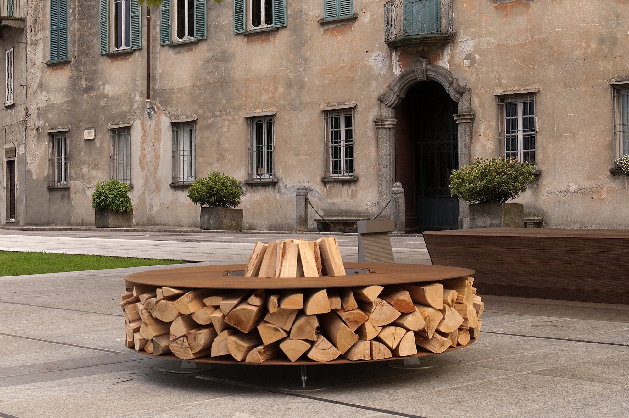 Zero is a wood fireplace for outdoor use designed for pleasant outdoor moments. Design and art blend to form a new furnishing accessory and its mission is very simple: bringing people together. It is provided with a closing disk that covers the combustion chamber, so as to prevent residual material getting out in the event of rain or wind. Zero is not just a fireplace but also a container for firewood which, when not in use, can also be a useful storage surface. It also comes with grill kit for braais in summer.