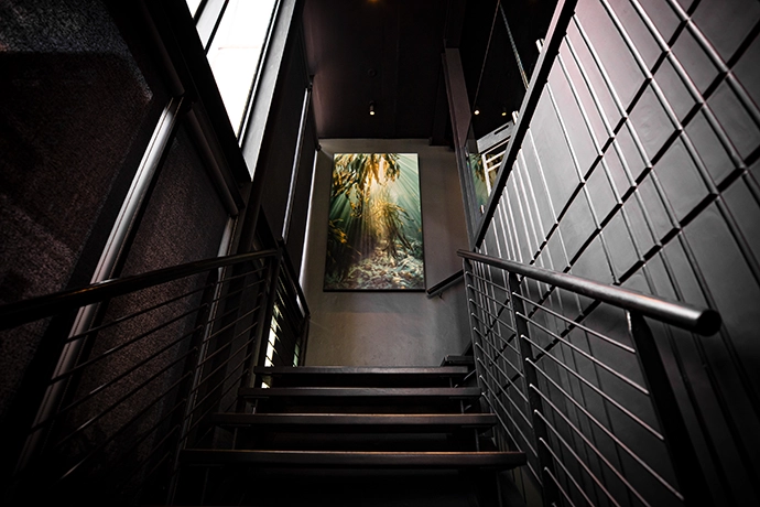 The mural that previously adorned the stairwell has been replaced with a commissioned oil work by artist Jaco van Schalkwyk. His large-scale kelp forest painting reflects the Cape’s coastal beauty, tying into the focus of the seasonal menu and the restaurant’s ongoing dedication to showcasing South Africa’s ecosystems.