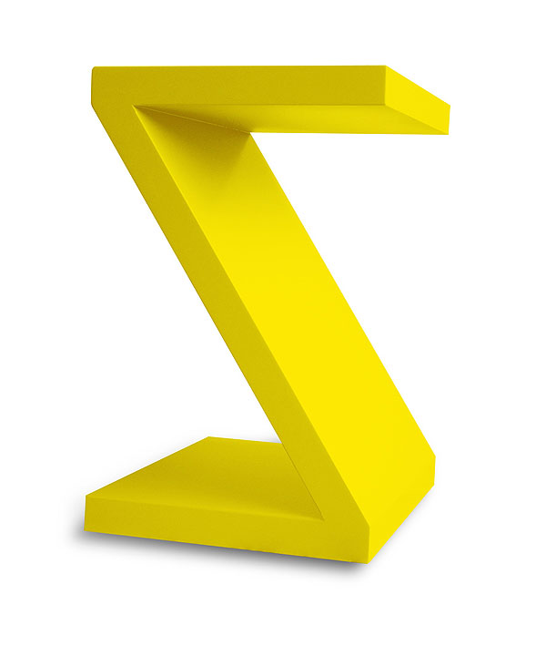 Although elementary, the Z Table is versatile. You could tip it over sideways and add a piece of glass on top, which would create a small coffee table, or it can be tipped over backwards and a longer coffee table is presented. “Another option is to use two (or multiples of two) of them together vertically, on their sides or on their backs to create larger tables with a glass top,” Michelle says.