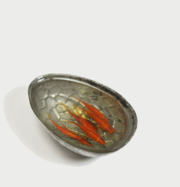 It was while he was struggling with his artistic vision that Riusuke’s pet goldfish became his inspiration and then turned into his lifelong passion and the theme of his work. The artist’s unique painting style uses acrylic on clear resin, which is poured into containers to create a lifelike three-dimensional effect.